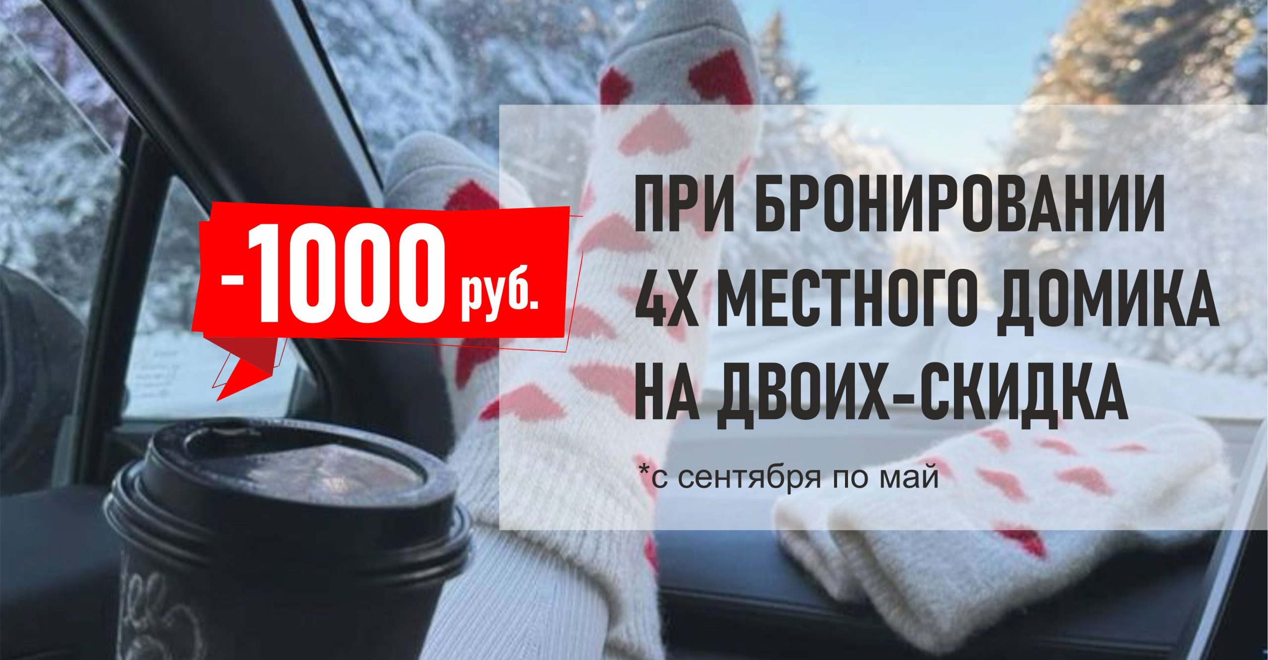 Подарите себе и своим любимым уютный отдых в бревенчатом домике со скидкой 1000 рублей! Пусть это будет время для душевных разговоров и создания самых теплых, и светлых воспоминаний, которые вы будете бережно хранить в своих сердцах.